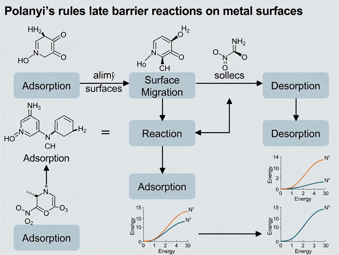 This analysis is framed within the ongoing research into Polanyi's rules for late barrier reactions on metal surfaces. The central thesis posits that while Polanyi's original linear free-energy relationships provide a foundational kinetic framework, their predictive power for late-barrier reactions (where the transition state resembles products) is limited. This necessitates integration with the thermodynamic frameworks of Scaling Relations and the Sabatier Principle to achieve a comprehensive, predictive model for heterogeneous catalysis and surface science, with analogies applicable to enzyme and drug-target kinetics.